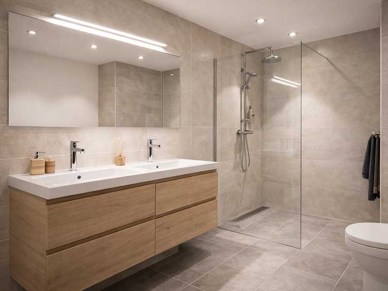 Respecteren van de badkamerzones (NEN 1010) voor plaatsing van schakelaars en stopcontacten.